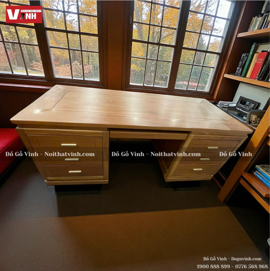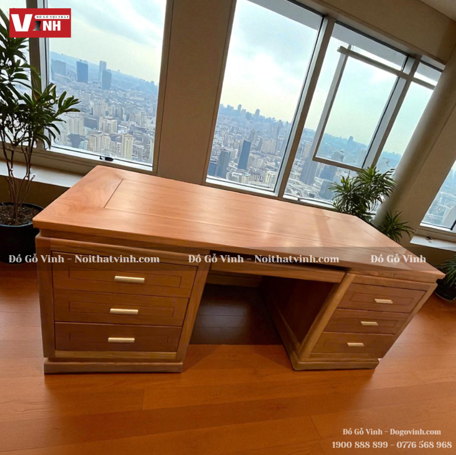Mẫu bàn làm việc V-N01 thuộc dòng nội thất Bình Dương cao cấp, được sản xuất trực tiếp bởi xưởng Đồ Gỗ Nội Thất Vinh. Sản phẩm sử dụng chất liệu gỗ đỏ tự nhiên, bề mặt xử lý kỹ lưỡng, giữ nguyên sắc vân và độ bền vượt trội trong quá trình sử dụng lâu dài.