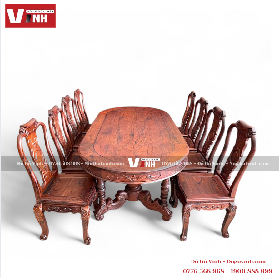 Bàn Oval 8 Ghế Đào Cẩm Lai - Nu