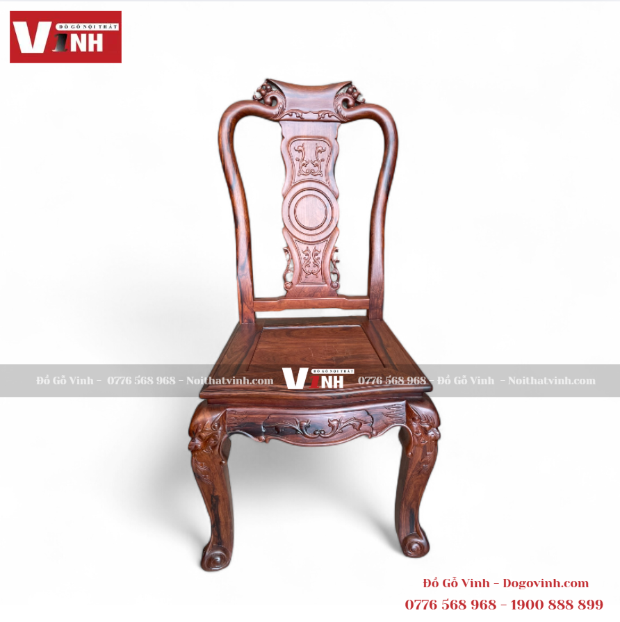 🔹 8 ghế đào chạm trổ thủ công – họa tiết sắc sảo, tạo điểm nhấn nghệ thuật và sự đồng bộ cho toàn bộ không gian.