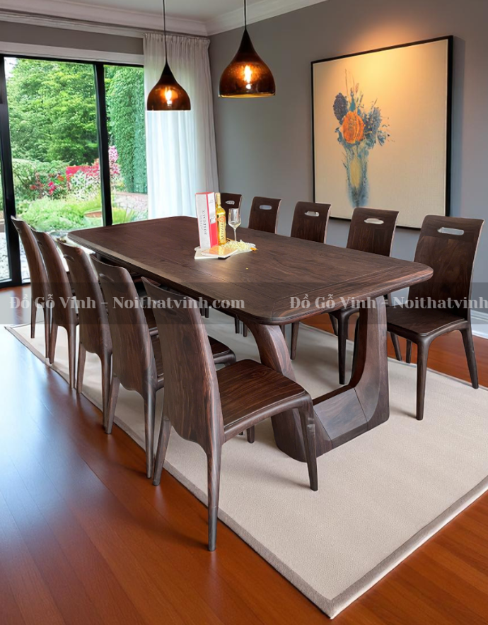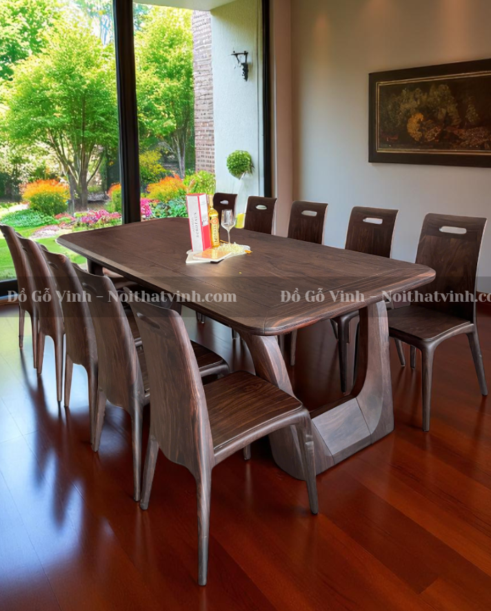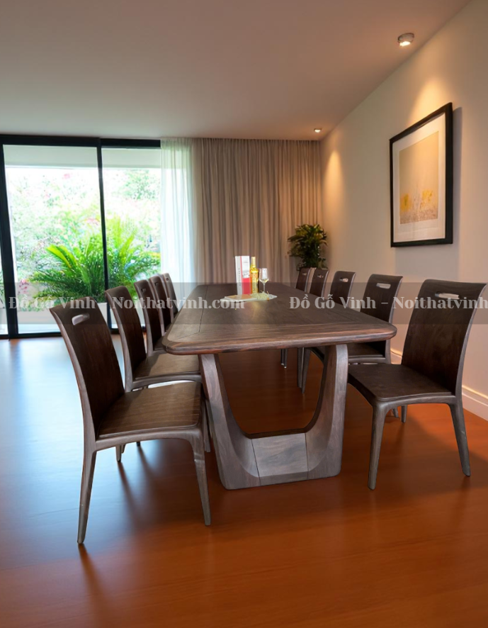 Tại Đồ Gỗ Vinh, mỗi sản phẩm đều được chế tác bởi nghệ nhân tay nghề cao, kết hợp máy móc hiện đại và chất liệu tuyển chọn. Bộ bàn ăn Caste + 10 ghế gỗ Chiu Liu không chỉ là nội thất mà còn là giá trị nghệ thuật, thể hiện gu thẩm mỹ và đẳng cấp sống của gia chủ.