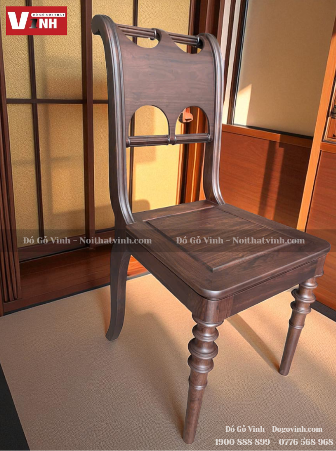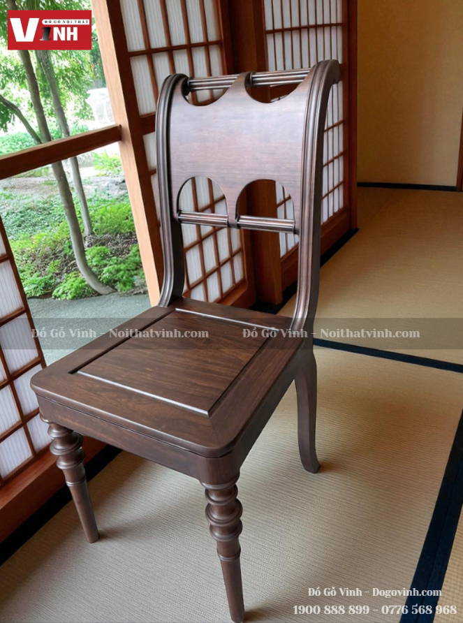 Thiết kế: Form dáng thanh thoát, ghế ngồi chắc chắn, tựa lưng ôm cong theo cơ thể mang lại sự thoải mái tối đa trong từng bữa ăn.