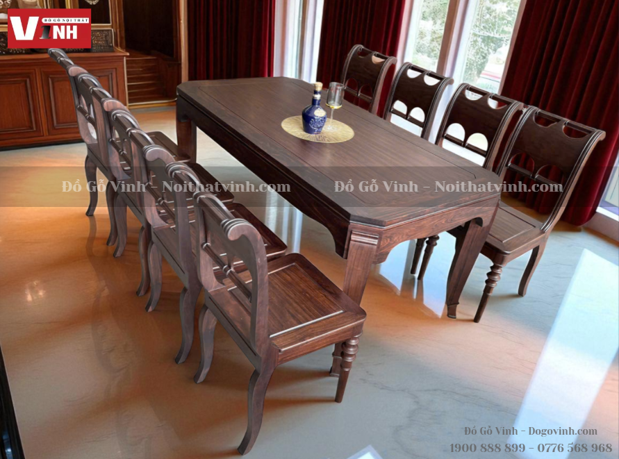 Sản phẩm dễ dàng kết hợp với phong cách nội thất hiện đại, tân cổ điển hoặc tối giản. Được phân phối độc quyền tại nội thất Bình Dương bởi Đồ Gỗ Vinh, Bộ Bàn Ăn Signature 8 Ghế là lựa chọn lý tưởng cho gia đình, biệt thự, căn hộ cao cấp hoặc nhà phố.