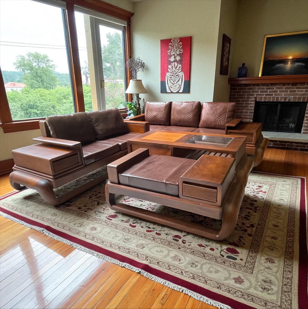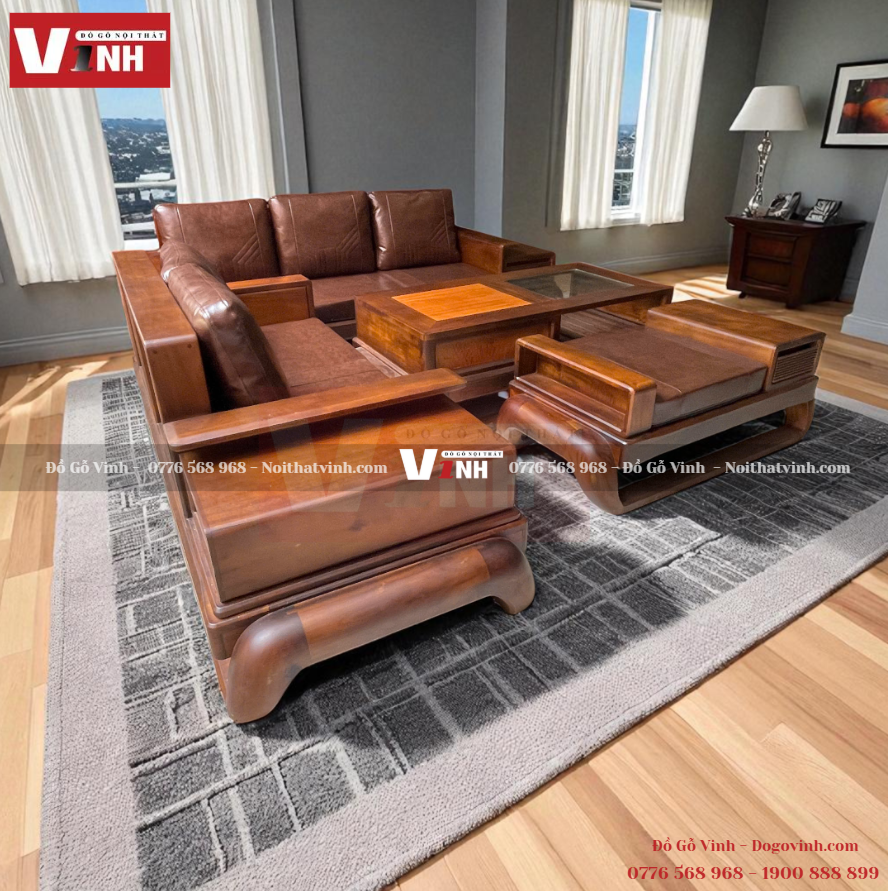 Mẫu bộ ghế chân uốn 2 băng 5 món là lựa chọn được nhiều khách hàng tại nội thất Bình Dương ưa chuộng. Với đường cong mềm mại ở phần chân ghế, sản phẩm vừa mang tính thẩm mỹ cao vừa thể hiện sự bền vững trong kết cấu. Điểm nhấn của bộ ghế chính là sự kết hợp hài hòa giữa gỗ gõ đỏ và gỗ tràm cùng phần nệm cao cấp, đem lại trải nghiệm ngồi thoải mái và sang trọng.