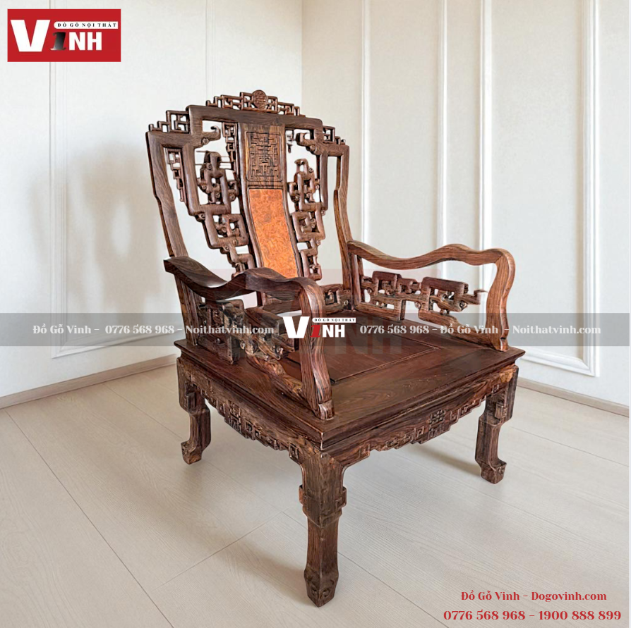 Thiết kế truyền thống, tỷ lệ cân đối, chạm khắc tinh xảo, tôn lên vẻ trang trọng cho không gian phòng khách hoặc tiếp khách.