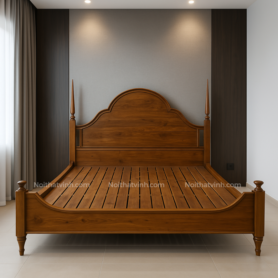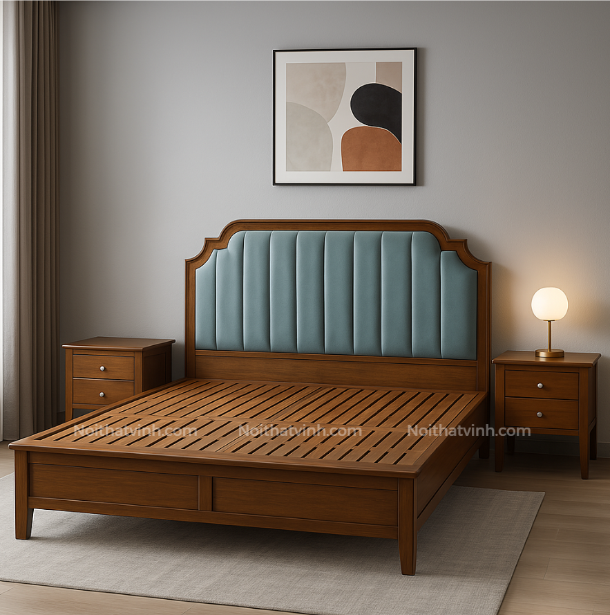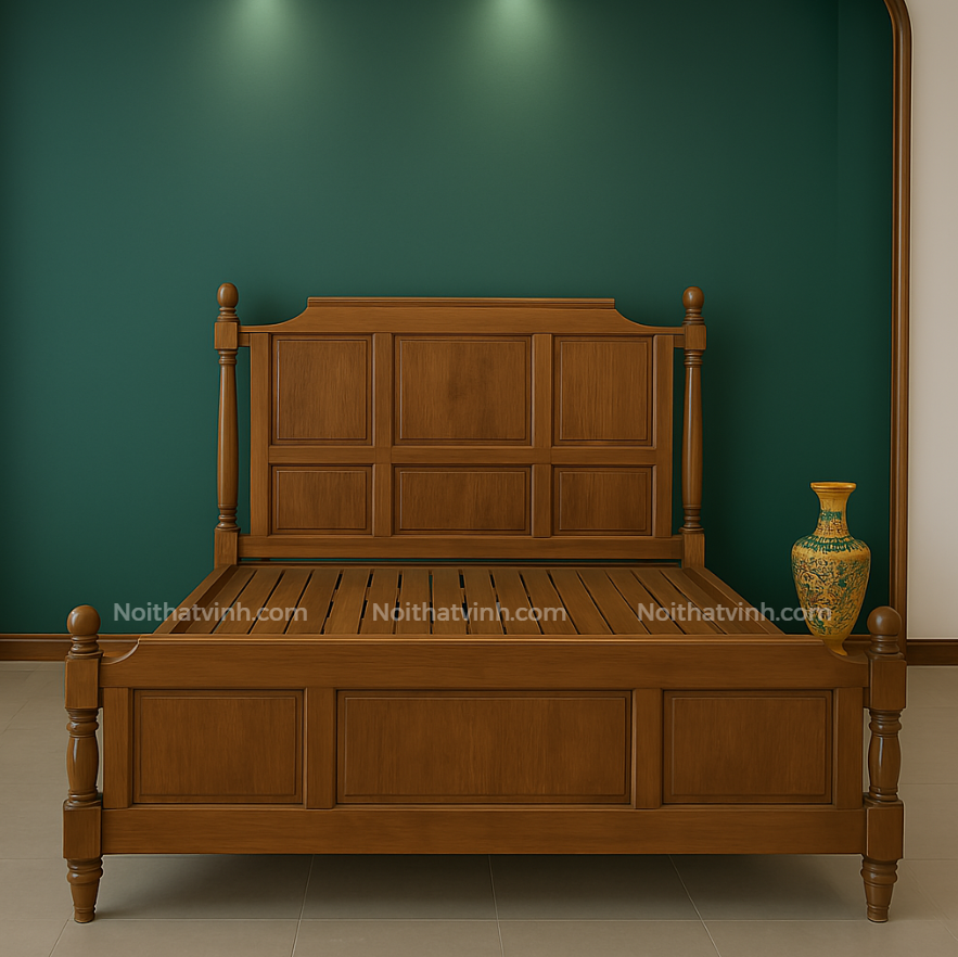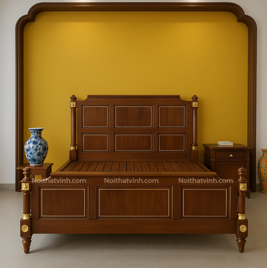 Dành cho những khách hàng tại *nội thất Bình Dương* đang tìm kiếm một sản phẩm vừa bền bỉ, vừa mang dấu ấn thẩm mỹ riêng, giường phong cách Indochine là lựa chọn lý tưởng. Kiểu dáng sang trọng, dễ phối cùng tủ áo, kệ tivi, tab đầu giường cùng tông gỗ, mang lại sự đồng bộ cho tổng thể phòng ngủ.