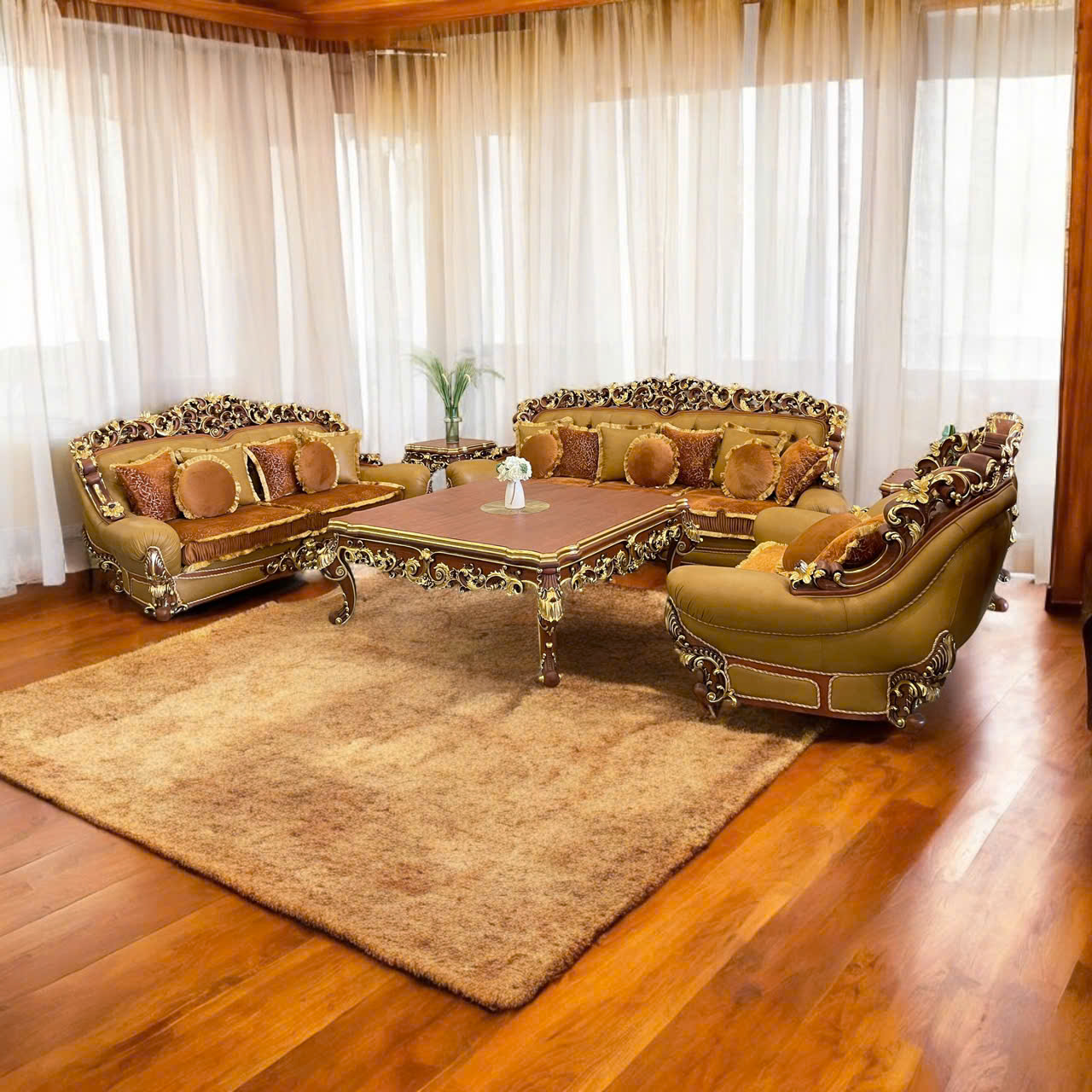 Salon Rococo không đơn thuần là một món nội thất – đó là tác phẩm nghệ thuật độc bản, được mạ vàng tinh xảo, sơn Inchem cao cấp, sử dụng vải Bỉ và da thật Italy. Phù hợp với không gian phòng khách sang trọng tại Bình Dương và các biệt thự cao cấp.