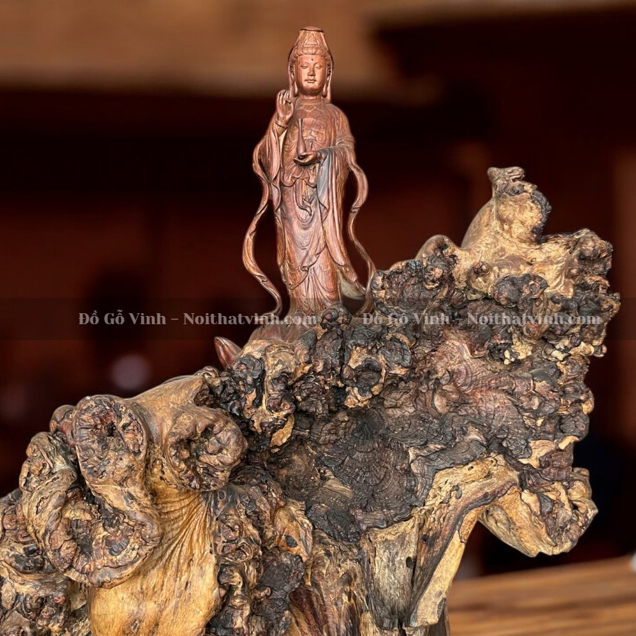 Từ khối gỗ đó, sau hàng tháng trời tỉa tót, chạm tay, soi nét và giữ từng thớ gỗ nguyên bản – một tượng Quan Âm Bồ Tát độc bản ra đời. Không có bản thứ hai. Không copy. Không khuôn mẫu.